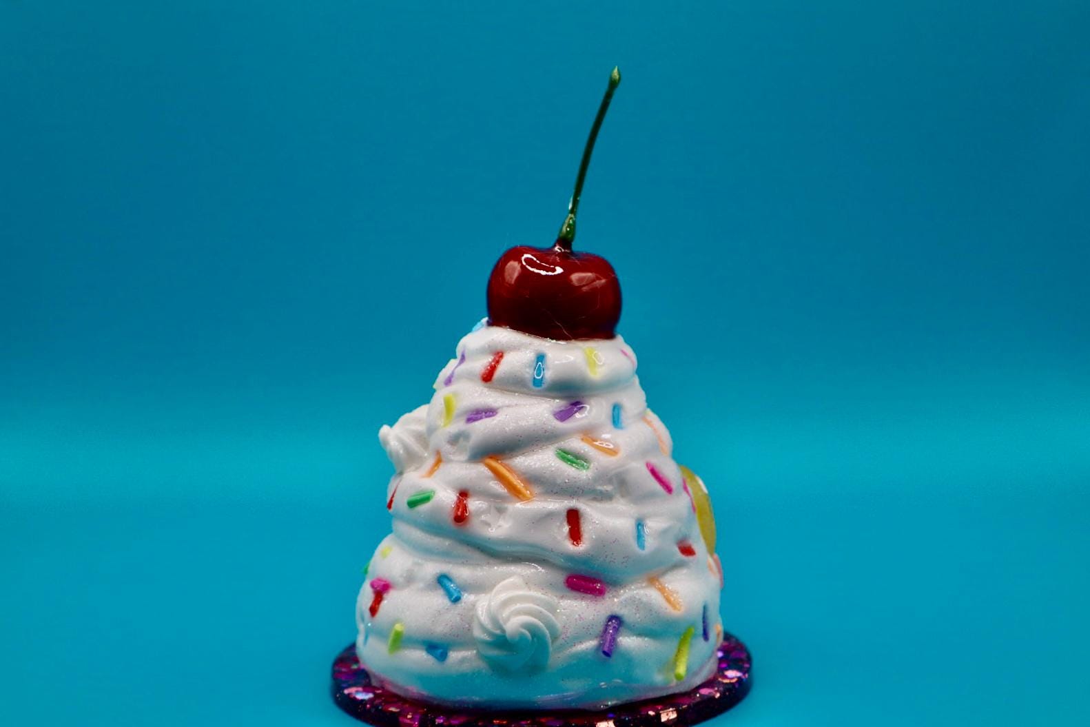 Turn heads and add a sprinkle of fun to your Stanley Cup with this adorable ice cream-shaped topper! Designed to look like a delicious swirl of ice cream with a cherry on top, this unique accessory adds a playful twist to your tumbler. It will fit 40oz Stanley Tumbler.